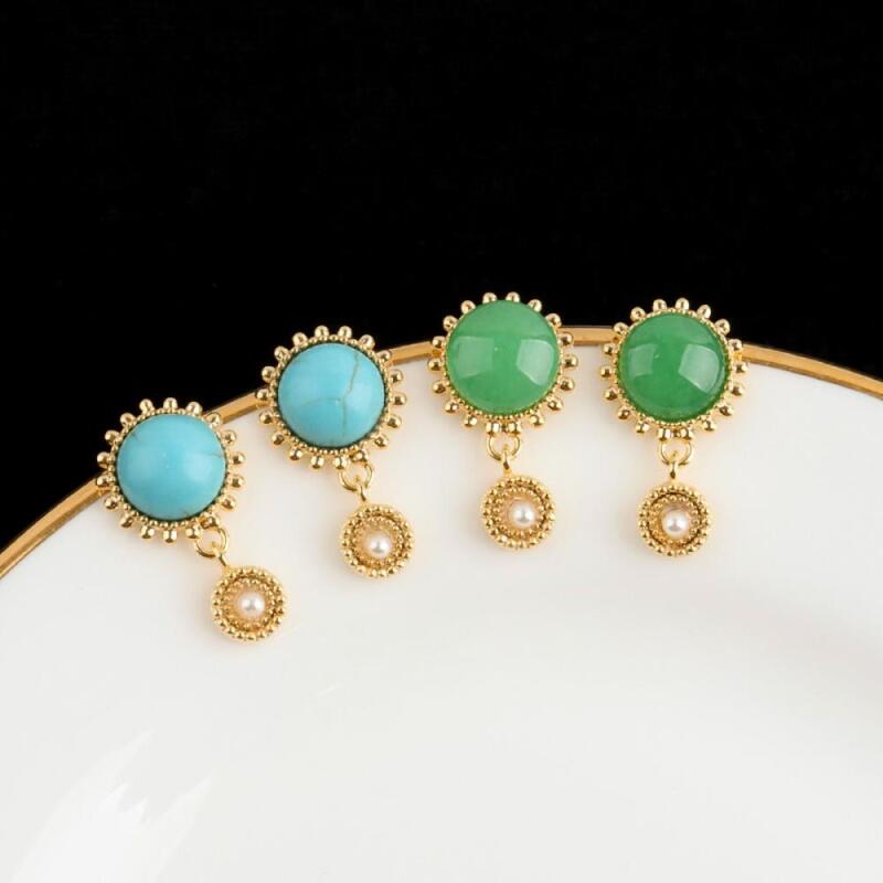Women's Vintage Color Turquoise Silver Pin Earrings