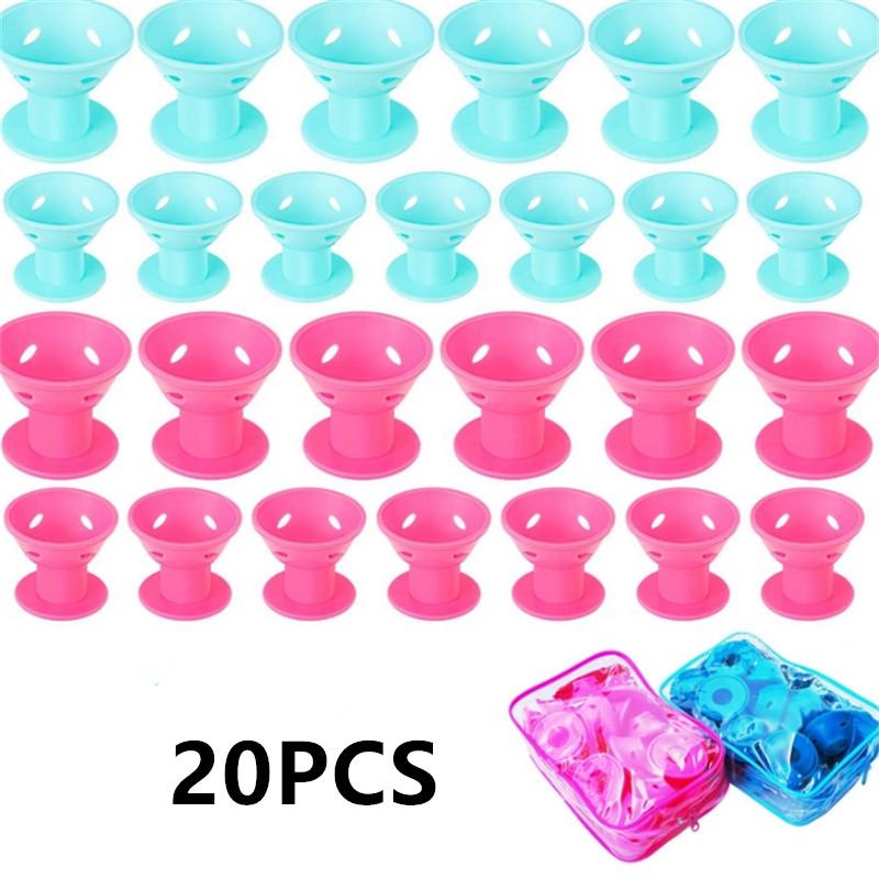 10/20PCS Pink Silicone Curlers Heatless Sleeping Bangs Roll Mushroom Bell Curlers Curly Hair Tubes For Women Girls Hair Curler