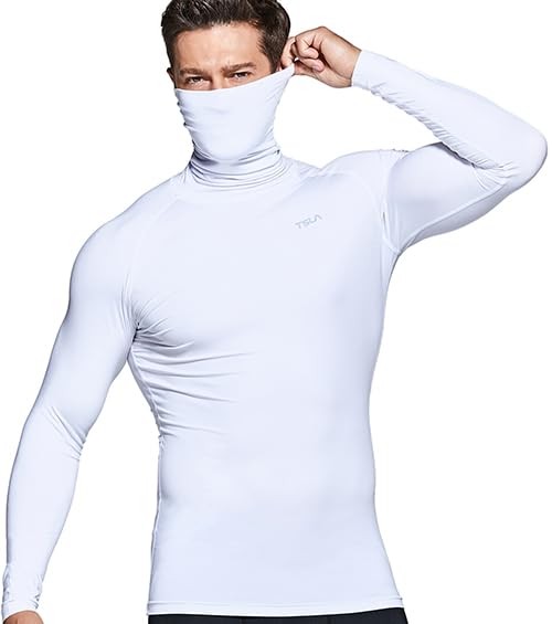 Tesla Long Sleeve Undershirt with Mask UV Compression Sports Turtleneck Base Layer Underwear for and Fitness Men's [Stretchable, Protection,