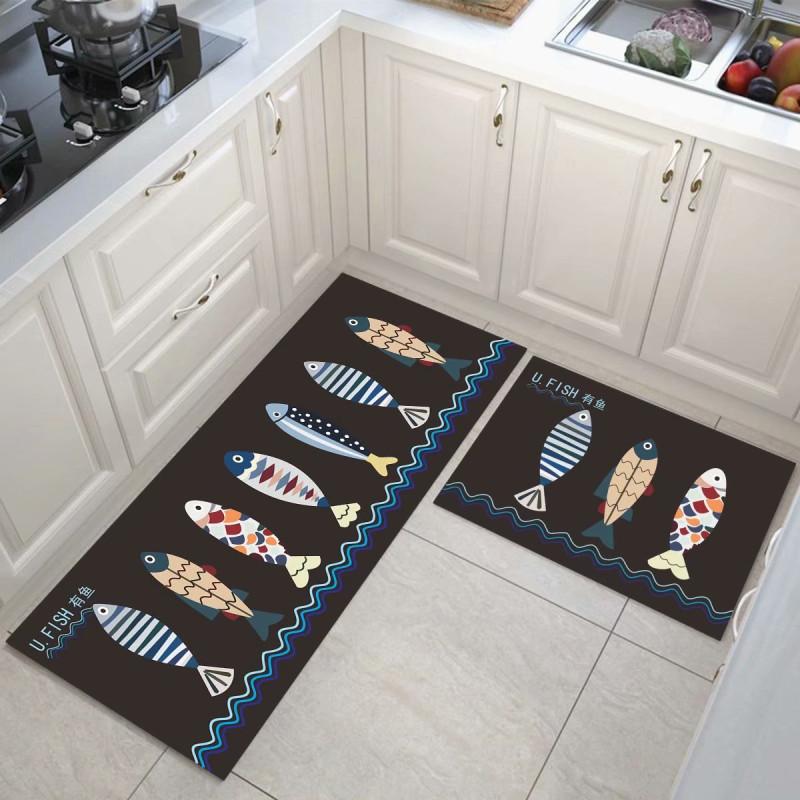 Cartoon Kitchen Floor Mat, Water-Absorbing And Oil-Absorbing Diatom Mud Floor Mat, Wear-Resistant And Dirt-Resistant L-Shaped Floor Mat, Anti-Skid Ma
