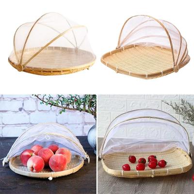 Yuvarlak Piknik Sebze Geçirmez Böcek Sivrisinek Yiyecek Dokuma Tepsi Toz Geçirmez Sepet Hasır Ağ Bambu Ekmek El Yapımı Meyve ile