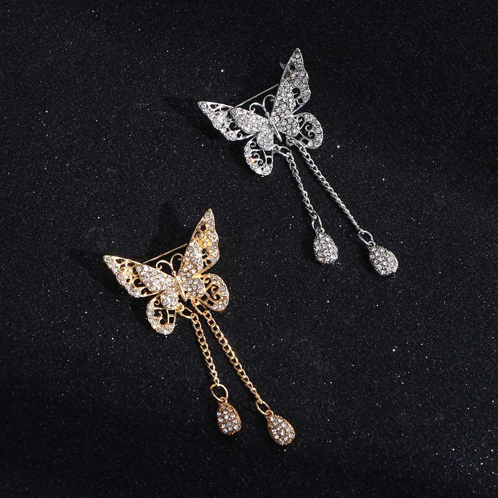 Zinc Zinc Alloy For Women Girl Drop Cubic Zircon Tassel Butterfly Jewelry Brooches Pin Corsage Accessories