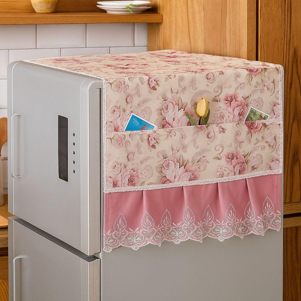 Flower Pattern Refrigerator Dust Cover Protective Cover Cabinet Dust Protection