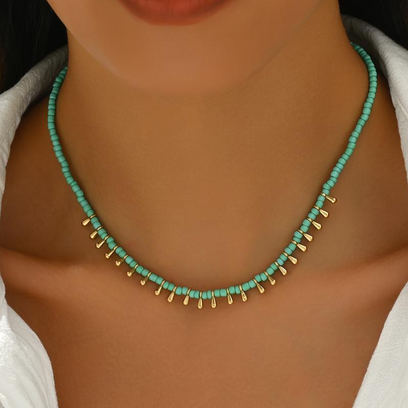 Simple Bohemian Style Water Drop Beaded Choker Clavicle Necklace for Women, Suitable for Daily Wear