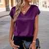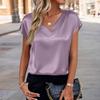 Women Stain Tops Short Sleeve Blouse V Neck Shirts Business Casual Outfits