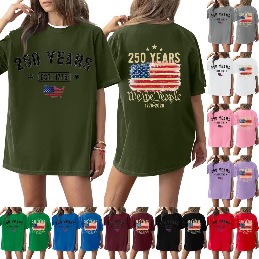 Women's Casual Independence Day 250 Anniversary Printed T-shirt Round Neck Pullover Short Sleeve Top