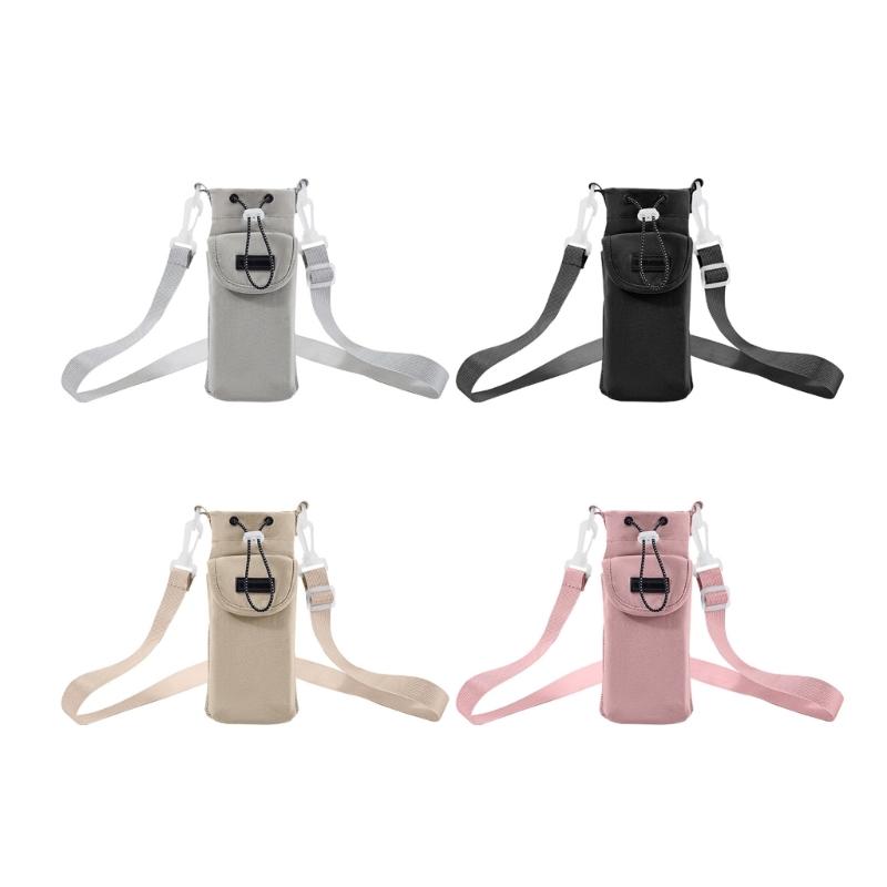 Water Bottle Bag with Adjustable Strap and Storage Pocket Water Cup Sleeve Drinkware Holder for Hiking and Camping