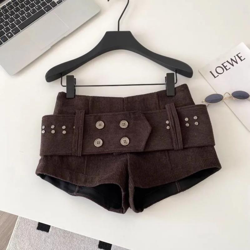 American Retro Style Belted Low Waist Corduroy Shorts Women's New Autumn Winter Sexy Spicy Casual Pants