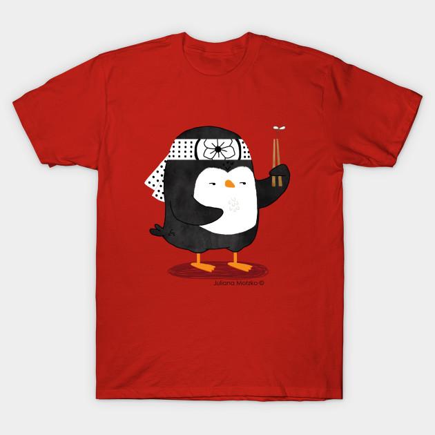 Men Black Print T-shirt Karate Penguin 2 No-Cut Transfer Paper Print Cotton Tshirt