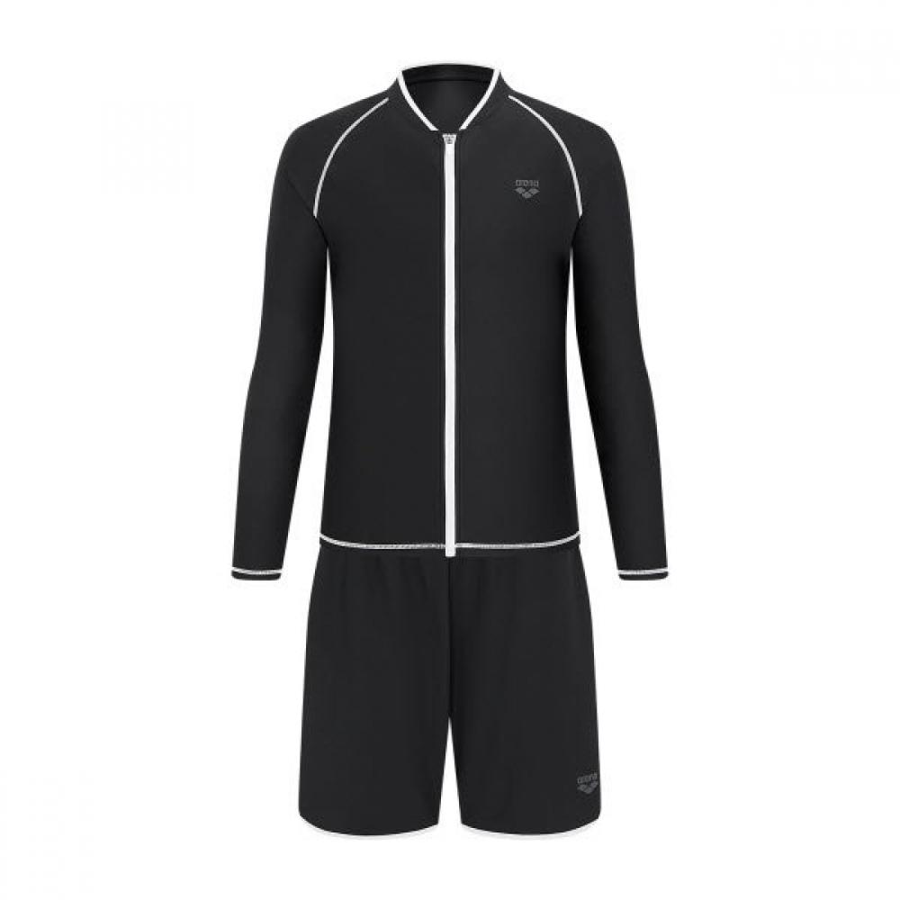 The Men's Wavy Regular Fit Zip-Up Rash Guard Set (A6BM1PC01_BLK) provides a cool and comfortable fit. It is suitable for swimming and beach activities, featuring a design that balances style and function to meet various needs.