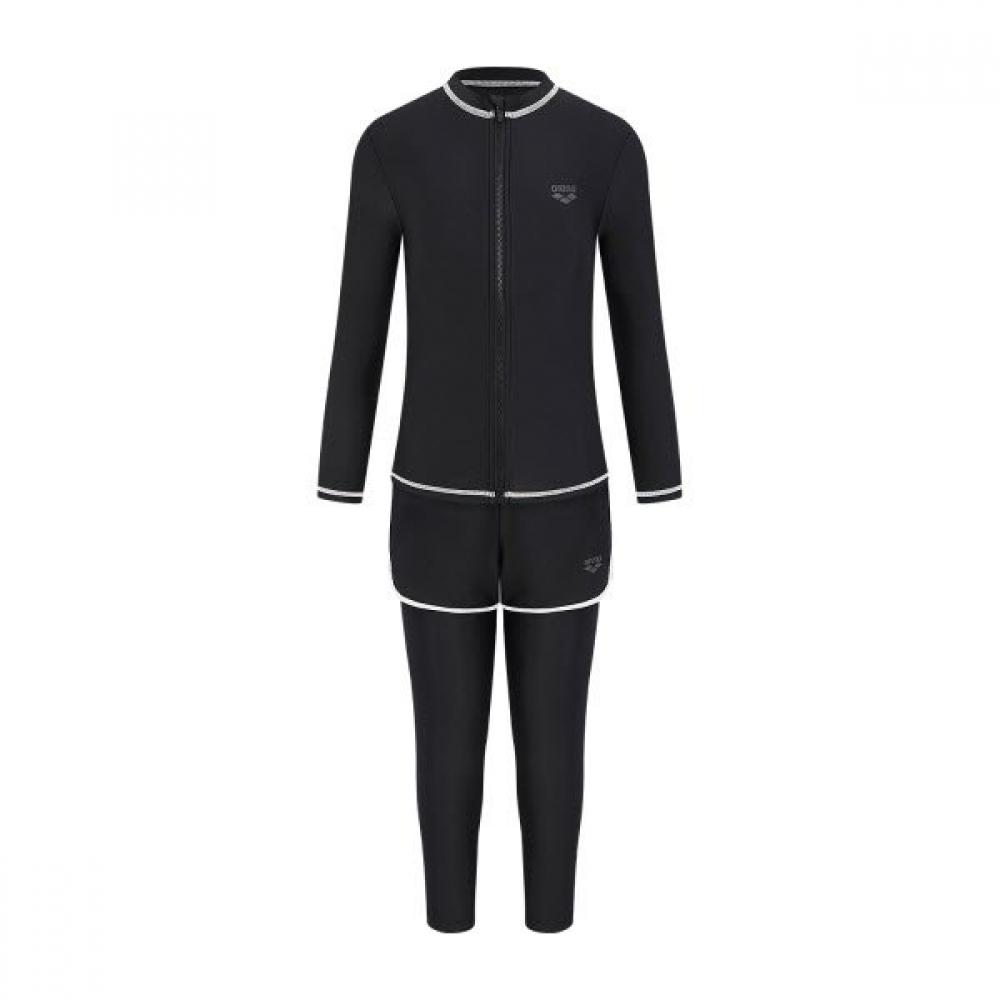 The girls' youth rash guard set is suitable for swimming and water sports activities. It provides flexible stretch and excellent fit for free movement while delivering effective protection in water. There are various size options available, allowing for tailored selections for each child's physique.