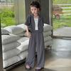 Summer Girls Suit Casual Short Sleeve Jacket Wide Leg Pants 2 Piece White Teen Children Clothing Set School Kids Outfits 10 12 Y