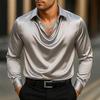 Günlük Erkek Saten İpek Elbise Gömlekleri Uzun Kollu Sosyal Tek Düğmeli Düğmeli Devrik Yaka Gömlekler Düğün Partisi Erkek Giyim