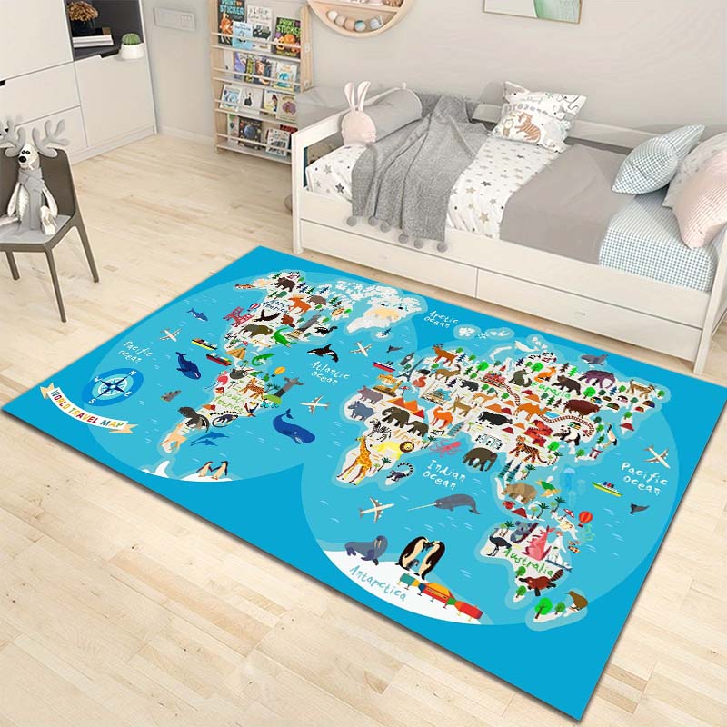 Cartoon World Map Pattern Floor Rug Carpets for Living Room Bedroom Bedside Bathroom Floor Mat Area Rug Kids Room Decor Gift