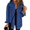 Women's Fashion Denim Shirt Jacket Milled Hem Button Casual Long Sleeve Jacket