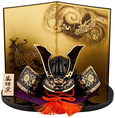 Yakushi Kiln May Doll, Made in Japan, for Boys' Day, Mini, Compact, Palm-Sized, Ceramic, Gold-Decorated, Successful Helmet (Includes Chrysanthemum Ara