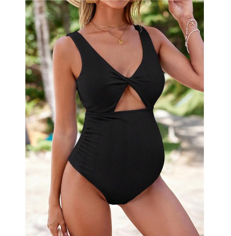 Pregnant Women One-Piece Smiwear Bathing Suit Solid Color Hollow-Out Beach Swimsuits European Bikini Premama Swimwears
