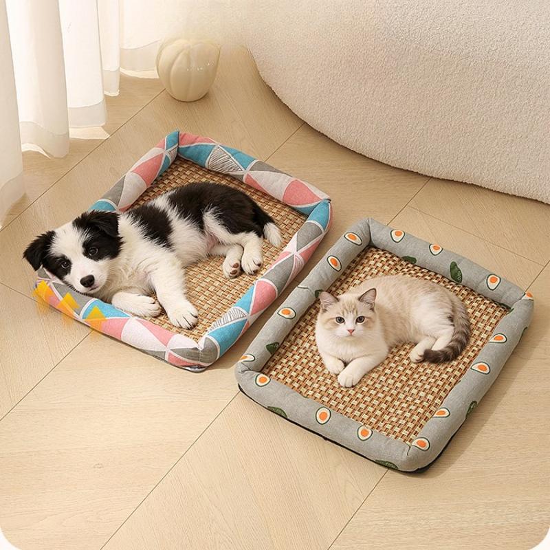 1pc Pet Dog Bed Cooling Mat Summer Cool and Breathable Cat Bed Rattan Mat Square Cool Beds All Season Universal Pet Supplies Wear-resistant Durable
