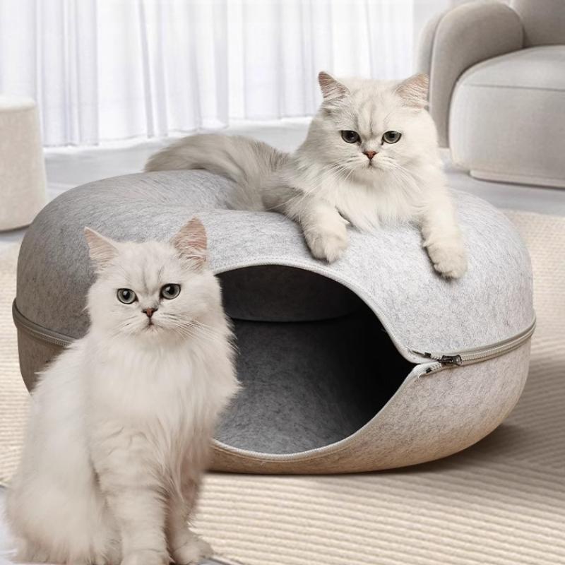Circular Interactive Cat House Felt Donuts Cat Nests Tunnels Play Small Dogs Pet Houses One Nest Dual-use Suitable for Families with Multiple Cats