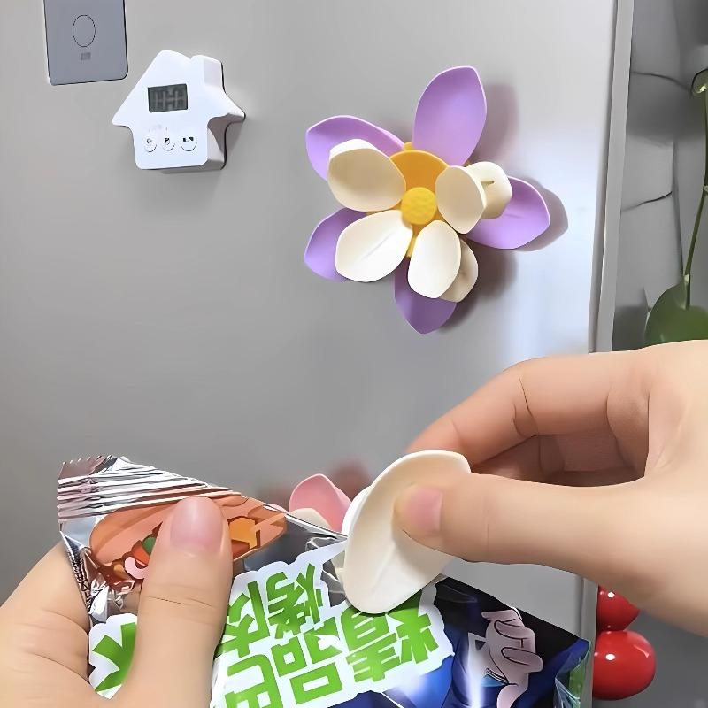 New Double Layer Lotus Sealing Clip Petal Magnetic Refrigerator Sticker Food Snack Bag Sealer Sakura Design Home Kitchen Fresh