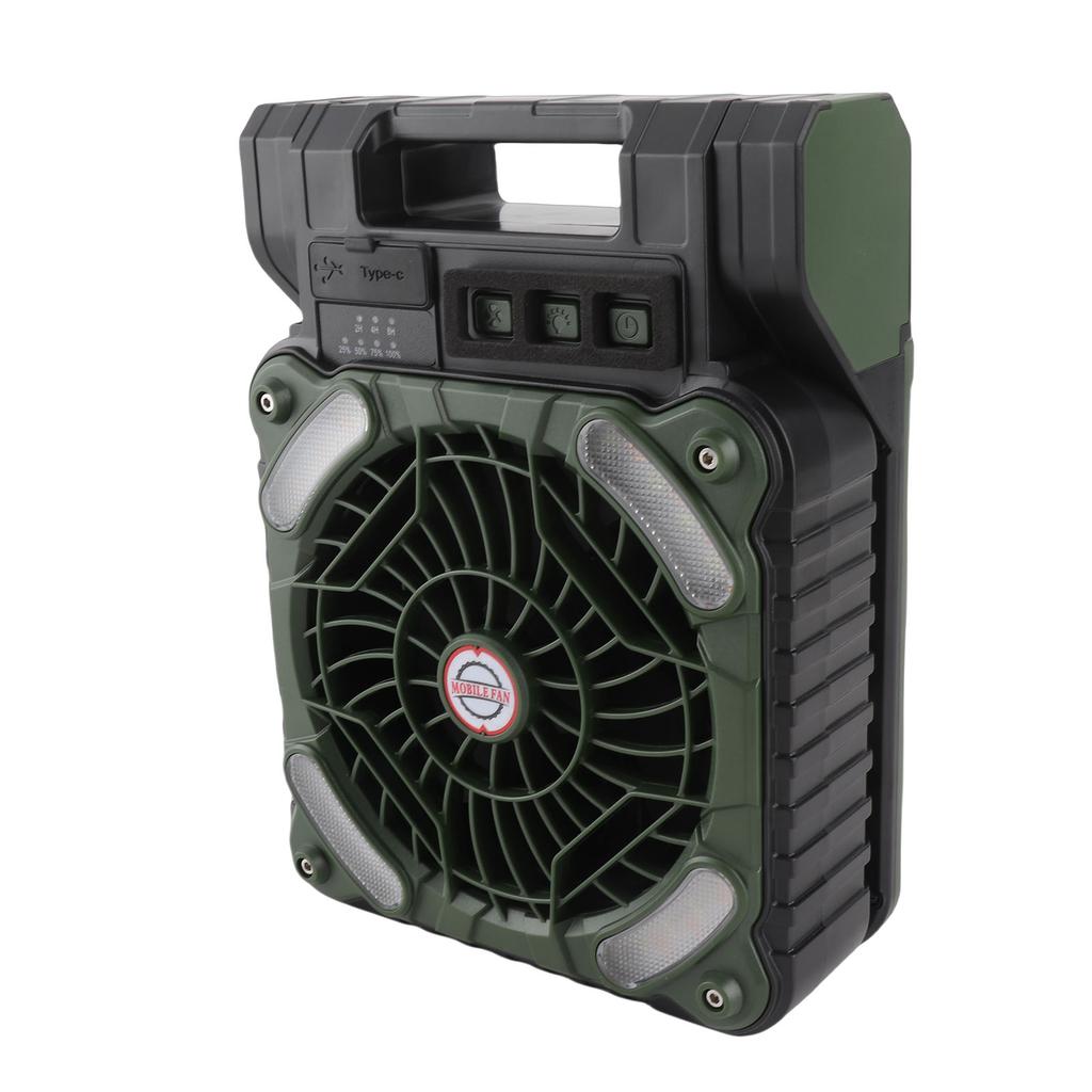 Solar Fan 5200MAH Type C Charging 4 Speed Brushless Motor 4.5mCelsiuss Low Noise LED Timer Solar Camping Fan for Fishing Outdoor Activities
