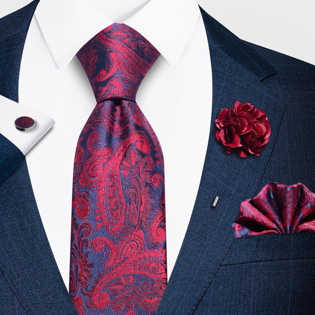 Fashion Men'S Paisley Tie Suit Pocket Towel Set 8Cm Polyester Jacquard Business Dress Tie