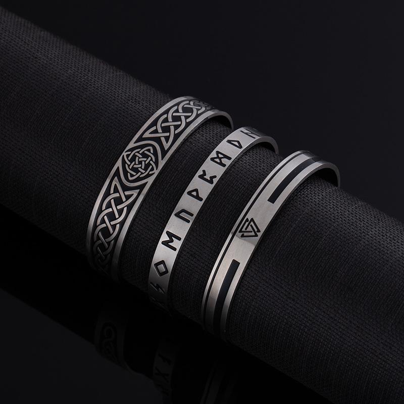Vintage Bracelet Viking Odin Rune Letter Stainless Steel Open Bracelet Trendy Cool Couple Hand Jewelry