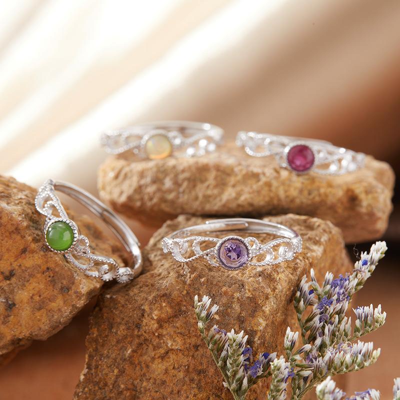 Natural Sapphire Ruby Topa Garnet Peridot Colored Treasure Ring Women'S S925 Sterling Silver Index Finger Ring