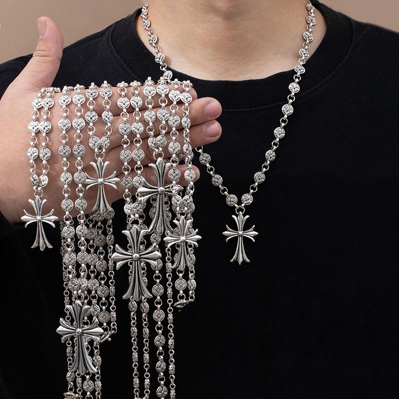 Street Hip Hop Nightclub Trendy Brand Cross Necklace Handmade Chain Retro Hanging Chain Sweater Chain Exquisite Personality High Sense