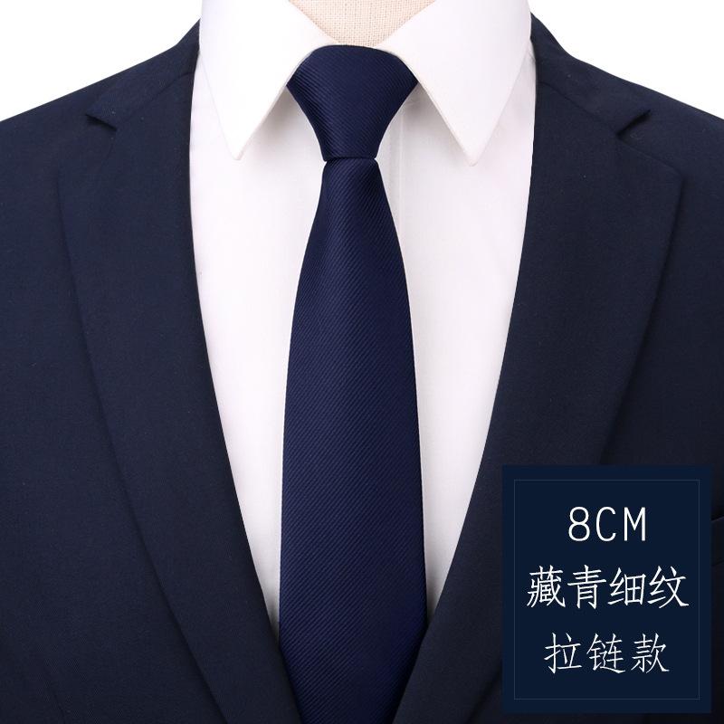 Tie Men'S Dress Business Navy Blue Fine Pattern Zipper Professional Wedding Groom Korean Version Zipper Hand Tie