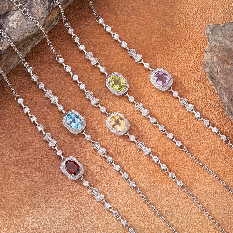 Natural Garnet Topaz Citrine Amethyst Bracelet Women'S S925 Silver Treasure Jewelry
