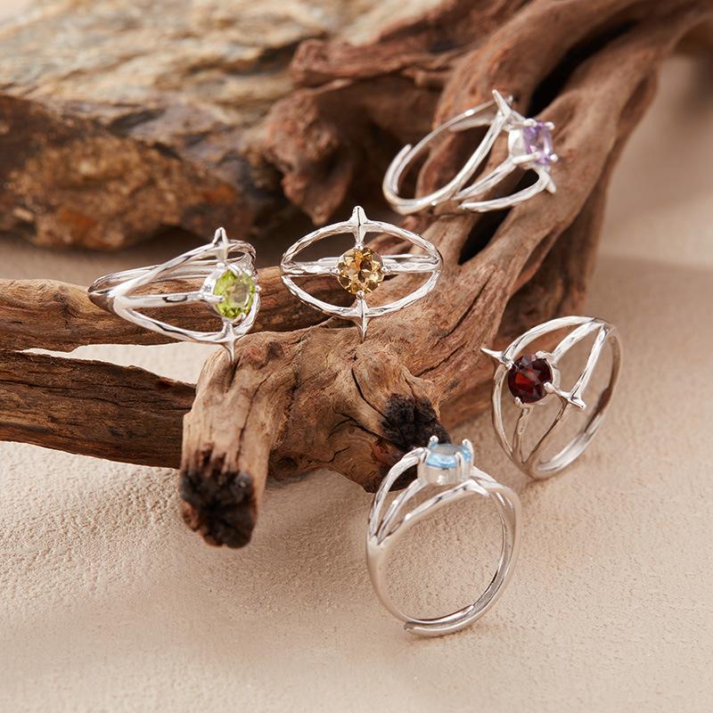 Bramble Mangxing Natural Citrine Topaz Olive Garnet Color Treasure Ring Women'S S925 Silver