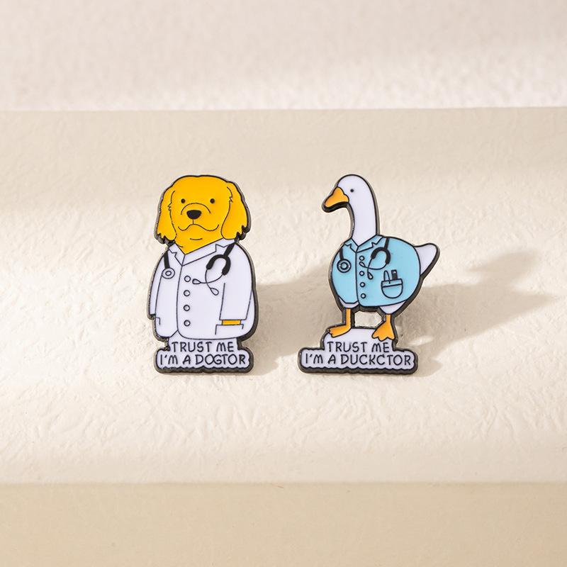 Yaratıcı Damla Karikatür Hayvan Doktor Rozeti Ördek Doktor Altın Retriever Doktor İğnesi Hassas Tasarım Sevimli Rozet