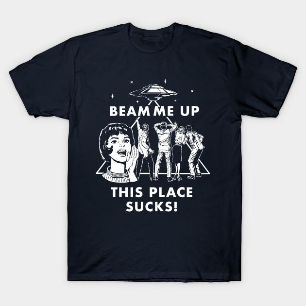 Men Black Print T-shirt Beam Me Up This Place Sucks! No-Cut Transfer Paper Print Cotton Tshirt