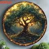 Vintage Tree of Life Wall Art Round 8x8 Inch Mandala Wood Decor Golden Leaves Sunlit Forest Handmade Bohemian Hanging