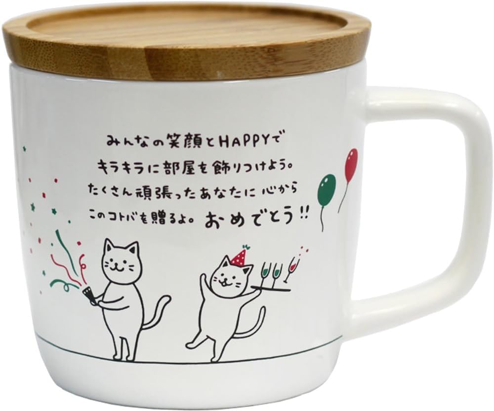 Artha Kimochi Mug with Dishwasher and Microwave Comfortable Gift Item AR0604184 Lid, Congratulations, 280ml, Safe, Porcelain/Natural Wood, Handle,