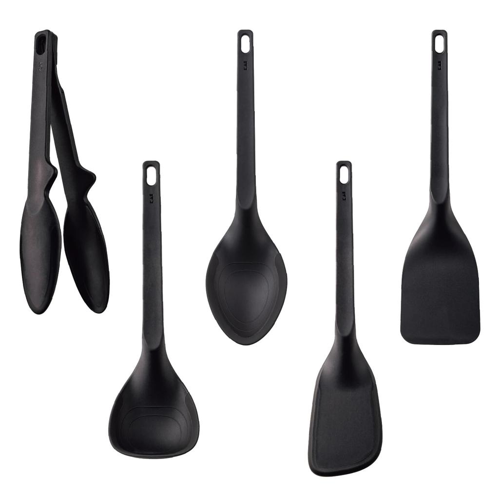 Kai Corporation KAI Kitchen Utensil Set of Dishwasher Easy to Stackable Kasanaru DE5778 5, Safe, Clean, Compact, Storage, Black,