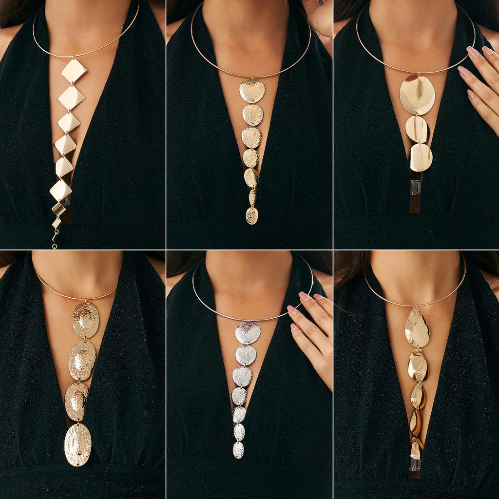Exaggerated Fashion Pockmarked Texture Iron Pendant Collar, Metal Glossy Y-Shaped Chain Collarbone Necklace