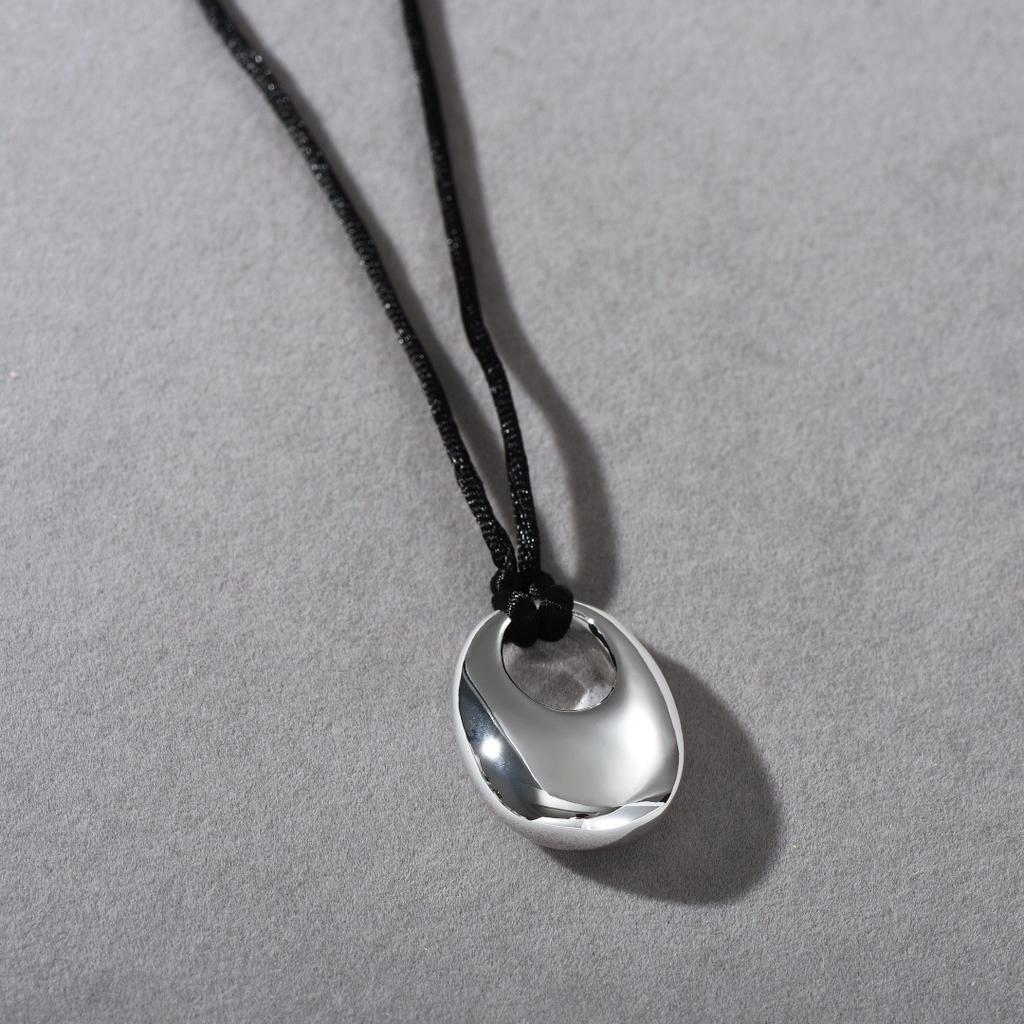 Wind Niche Design Black Rope Three-Dimensional Water Drop Shape Sweater Chain Pull Fashion Commuter Silver Metal Necklace