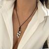 Simple Wax Line Geometric Necklace, Temperament Rice-Shaped Imitation Pearl Fringed Pendant Necklace Women