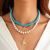 Beach Soft Pottery Imitation Pearl Stacked Gravel Necklace Women'S Irregular Shell Starfish Beaded Necklace