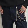 Design Imitation Pearl Flower Chain Trouser Chain, Hip-Hop Color Diamond-Encrusted Cross Waist Chain Pendant