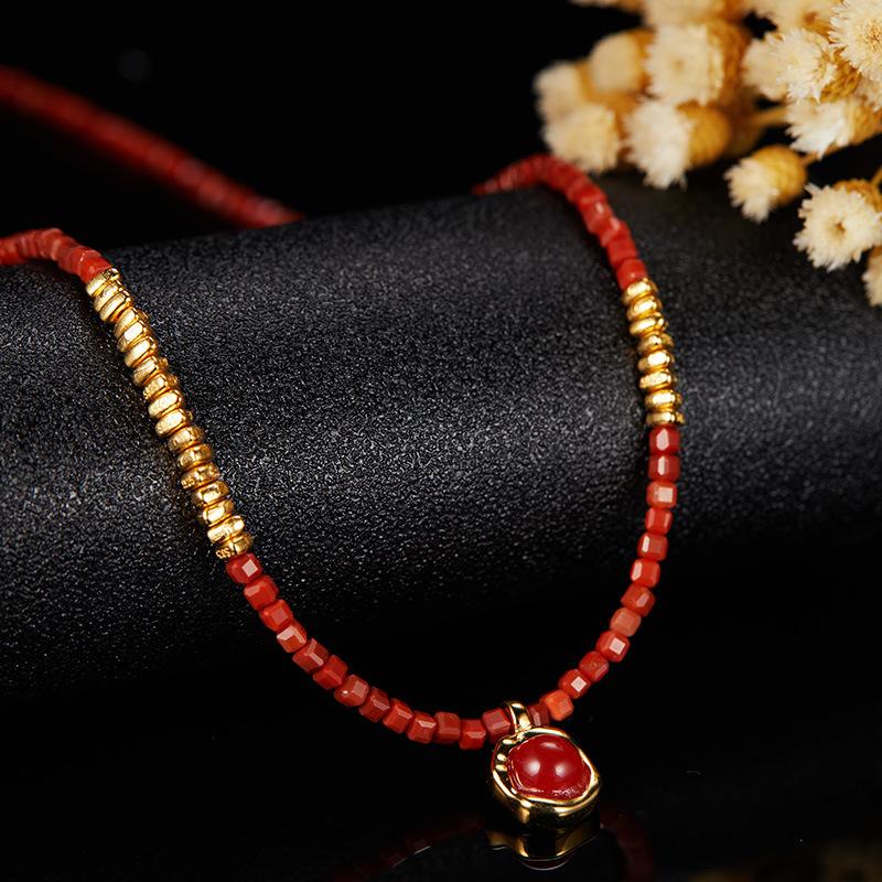 Natural Gemstone Nanhong Agate Necklace Women'S S925 Sterling Silver Pendant Broken Silver Xiaohongshu Jewelry
