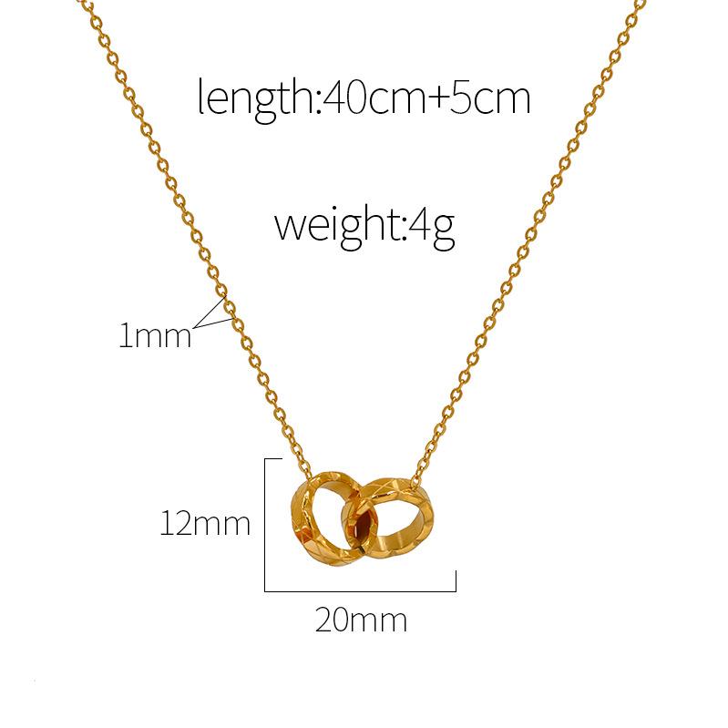 Gold Double Ring Interlocking Couple Popular Pendant Necklace Niche Design Versatile Titanium Steel Gold-Plated Korean