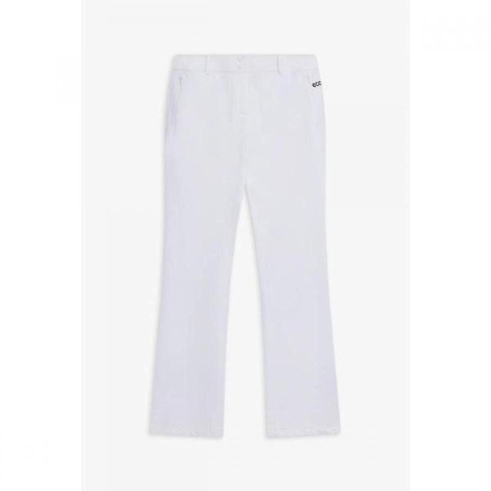 [Eco Golf] WOMEN Spring Bootcut Pants (Model: ESACPN21200) feature a sophisticated bootcut design that creates a slim silhouette for the legs, along with a sturdy wide waistband and split design that support the waist. Convenient belt loops and the Ecco golf tape logo add a premium touch. These pants are perfect for styling in the spring season.