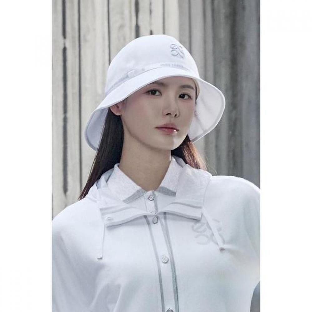 The Eco Golf WOMEN Logo Tape Basic Hat gently wraps around the face with a feminine design, uniquely harmonizing the 'MORETHANA GAMME' slogan lettering tape and a simple logo embroidery. It features a stopper strip for size adjustment, providing a comfortable fit.