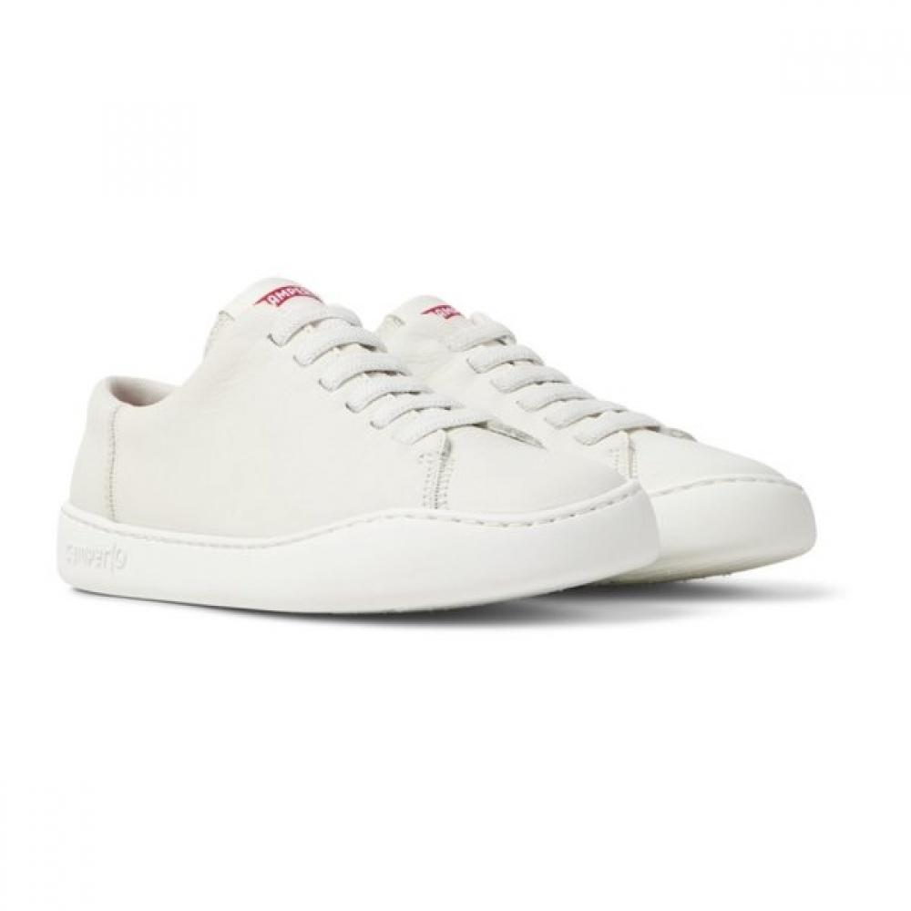 The Camper Peu Touring K200877-038 women's sneaker features stretchy shoelaces and a removable OrthoLite® Recycled insole for a comfortable fit. Crafted with a 2096 recycled EVA outsole, it offers excellent durability and is made from calfskin material that presents a chic style. This model reinterprets the iconic Peu design in a sporty manner, characterized by its distinctive curves.