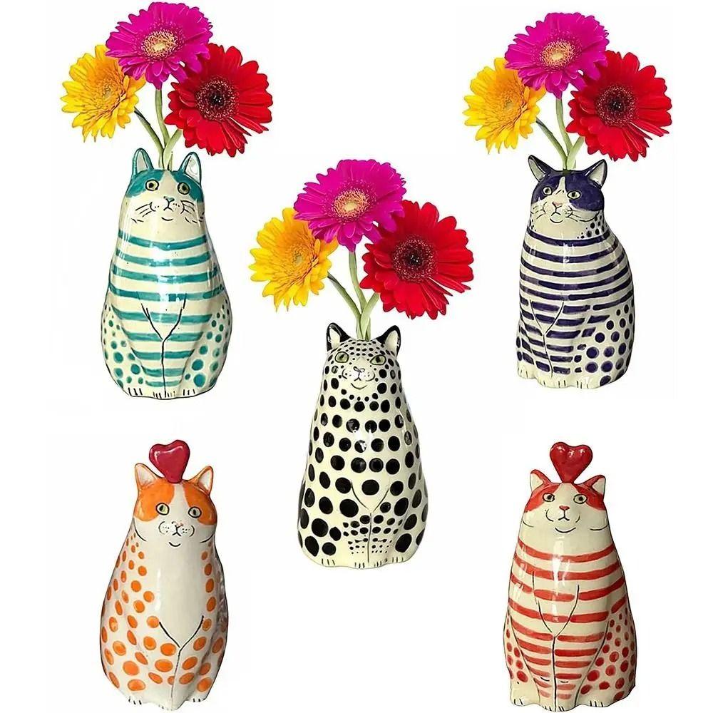 Multicolor Polka Dot Cat Vase Cute Hydroponic Flower Pot Bud Vase Resin Cat Vase Wedding Decor