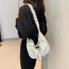 Pleated Canvas Shoulder Bag Drawstring Casual Underarm Bag Simple Cloud Crossbody Bag Women