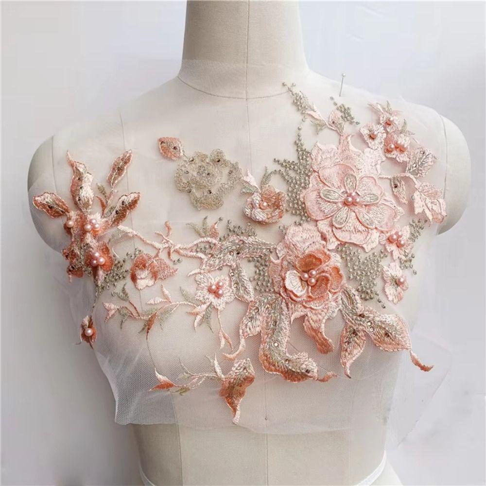 Colorful Sequined Sewing On Patches Flower Lace Beaded Lace Applique Bridal Dress